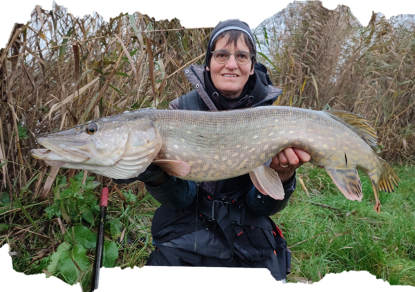 Jour 4 : Le lendemain de cette journée glaciale, nous avions été réchauffés par des vents modérés du sud. Au bord de l’eau, toutes les conditions avaient été réunies pour réussir. Nous avions au programme un circuit renfermant du brochet métré. Difficile à tromper, les consignes avaient été de pêcher avec simplicité en soignant l’approche. Dès les premiers lancers, nous avions eu la confirmation de notre intuition en ferrant un 90+ sur un poste que nous pensions vide. Il en avait été de même sur le deuxième polder où nous avions réalisé cinq 80 + dont 103 cm. Après avoir réalisé deux 75+ sur le troisième polder visité, nous étions arrivés sur le quatrième polder. Il était 14h30 et nous étions certains que cet endroit n’avait pas été visité. En retrait du poste, nous avions eu l’impression que nous devions encore être plus prudents dans notre approche et dans le choix du leurre. En retrait, nous avions réfléchi et décidé qu’un seul pêcheur tenterait l’approche au moyen d’un streamer. C’était à ma partenaire que revenait cette tâche. Au premier lancer, elle avait répondu de façon ferme à un léger gobage à peine perceptible. La suite avait été classique et s’était terminée par la mise au sec d’un long et lourd brochet, certainement le boss de ce réseau de polders. Là, nous avions vécu un très grand moment de travail en équipe et de pêche. Nous avions terminé cette journée sur un score de neuf prises.