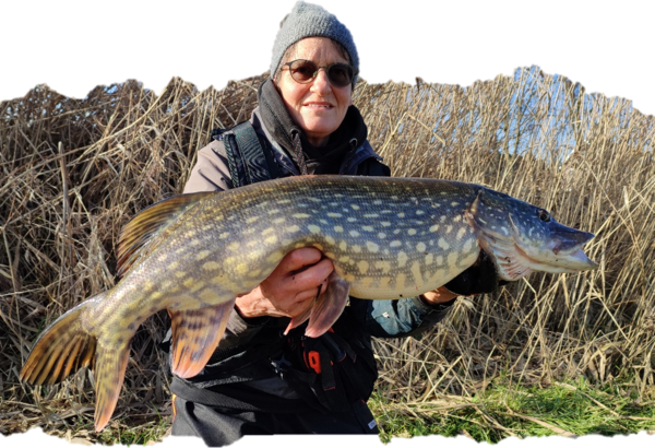 Jour 4 : Le lendemain de cette journée glaciale, nous avions été réchauffés par des vents modérés du sud. Au bord de l’eau, toutes les conditions avaient été réunies pour réussir. Nous avions au programme un circuit renfermant du brochet métré. Difficile à tromper, les consignes avaient été de pêcher avec simplicité en soignant l’approche. Dès les premiers lancers, nous avions eu la confirmation de notre intuition en ferrant un 90+ sur un poste que nous pensions vide. Il en avait été de même sur le deuxième polder où nous avions réalisé cinq 80 + dont 103 cm. Après avoir réalisé deux 75+ sur le troisième polder visité, nous étions arrivés sur le quatrième polder. Il était 14h30 et nous étions certains que cet endroit n’avait pas été visité. En retrait du poste, nous avions eu l’impression que nous devions encore être plus prudents dans notre approche et dans le choix du leurre. En retrait, nous avions réfléchi et décidé qu’un seul pêcheur tenterait l’approche au moyen d’un streamer. C’était à ma partenaire que revenait cette tâche. Au premier lancer, elle avait répondu de façon ferme à un léger gobage à peine perceptible. La suite avait été classique et s’était terminée par la mise au sec d’un long et lourd brochet, certainement le boss de ce réseau de polders. Là, nous avions vécu un très grand moment de travail en équipe et de pêche. Nous avions terminé cette journée sur un score de neuf prises.